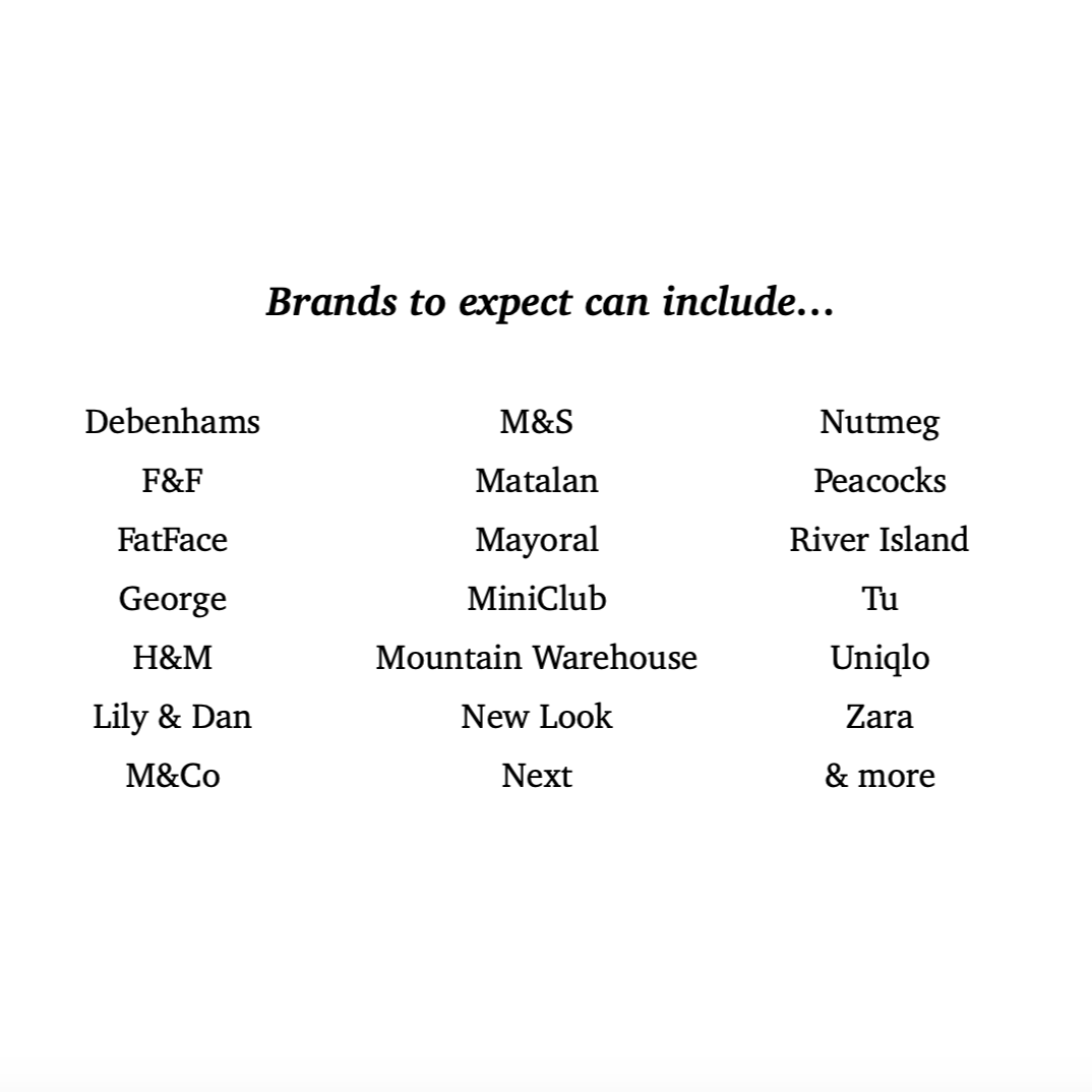 A mix of kids spring / summer clothing items, the best pieces from a full range of brands/labels. Will include; jeans, tops, jumpers, hoodies, skirts, dresses, etc.